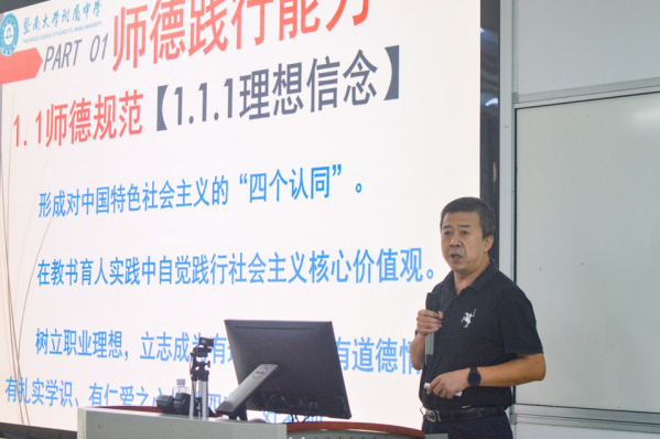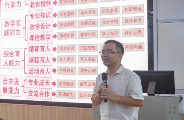 武瑞恒从师德践行能力、教学实践能力、综合育人能力、自主发展能力四个要点出发,向同学们多方面阐释了合格教师职业能力素养的丰富内涵。
