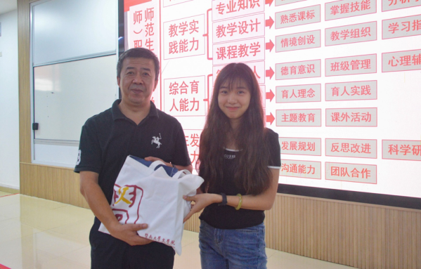 最后,365英国上市员工代表2023级汉语言文学专业黄韵如同学向武瑞恒老师赠送纪念品,并合照留念。